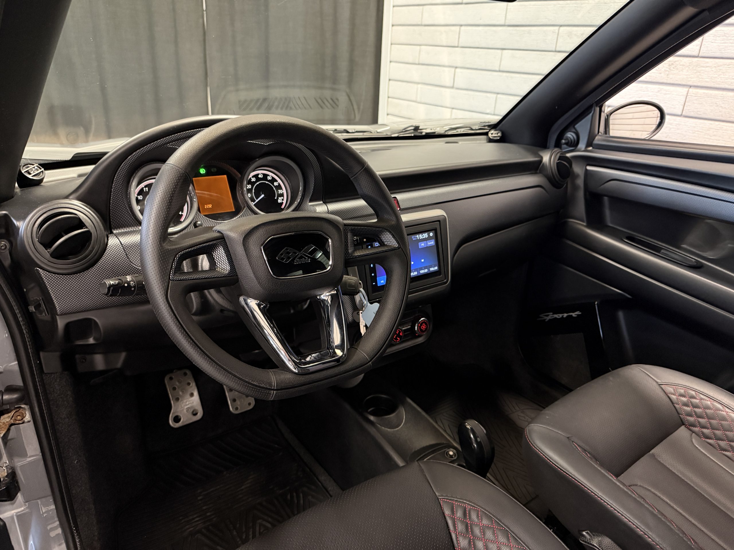 Extrautrustad med gummimattor och dubbade vinterhjul.